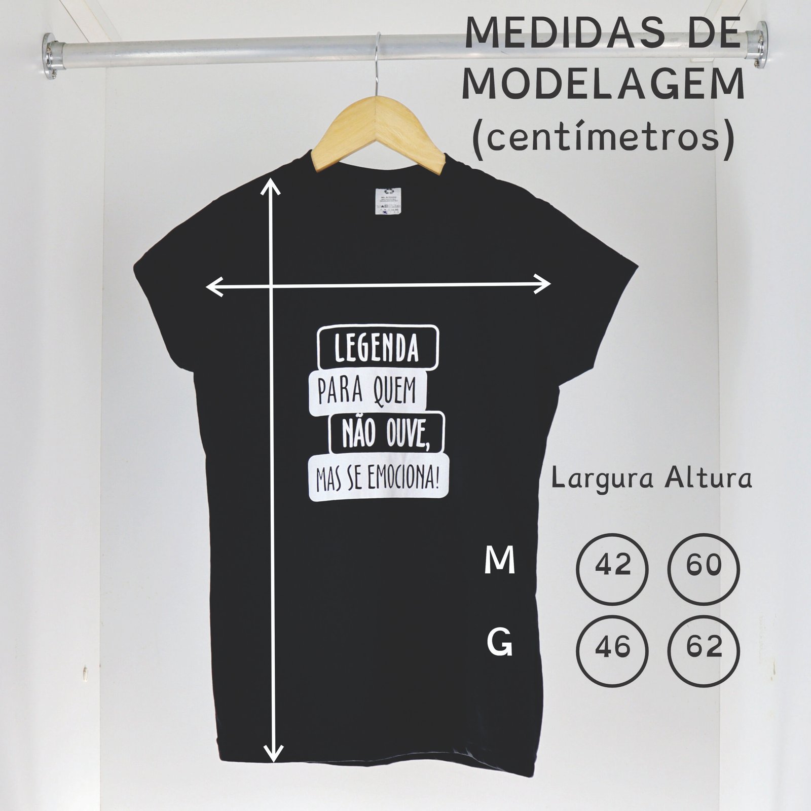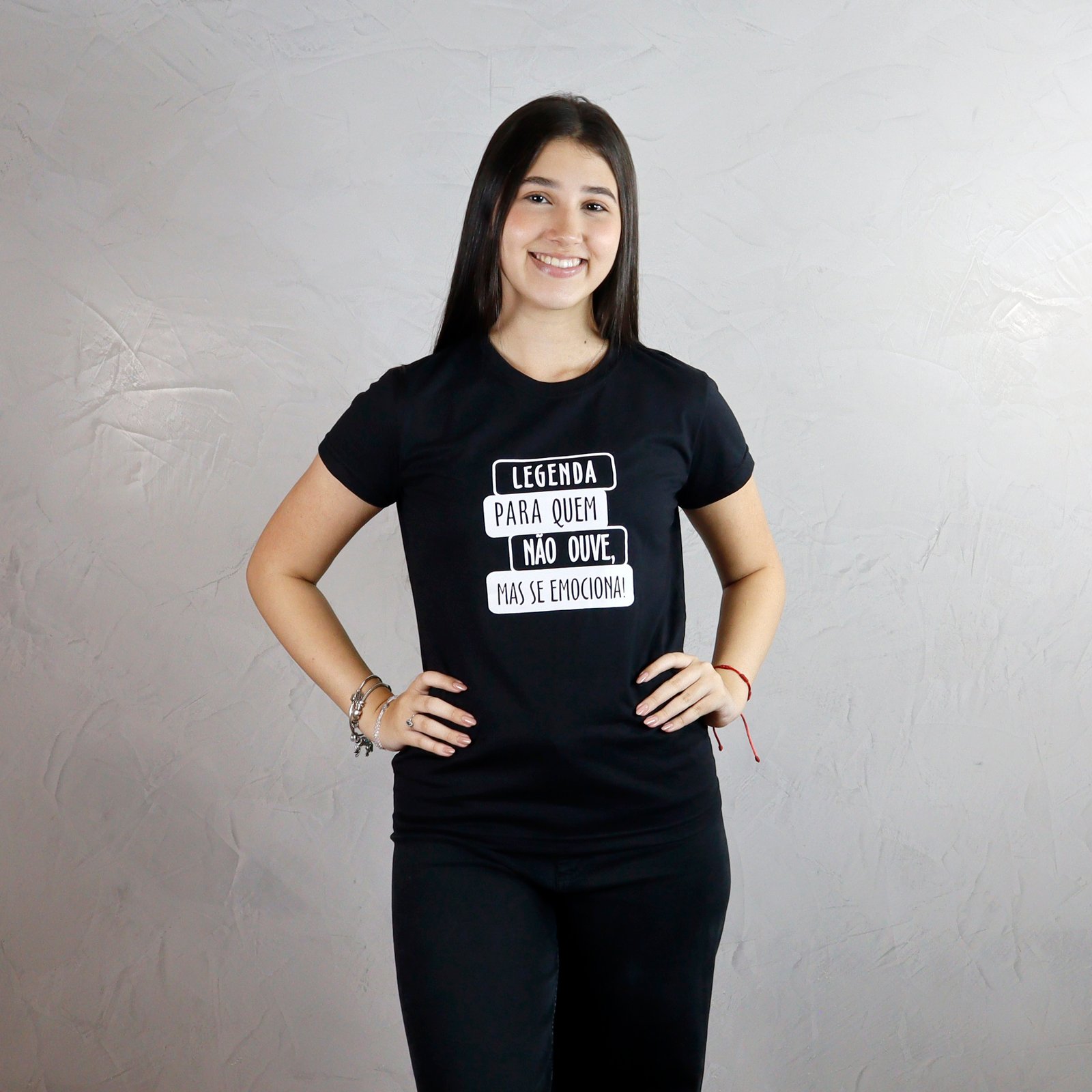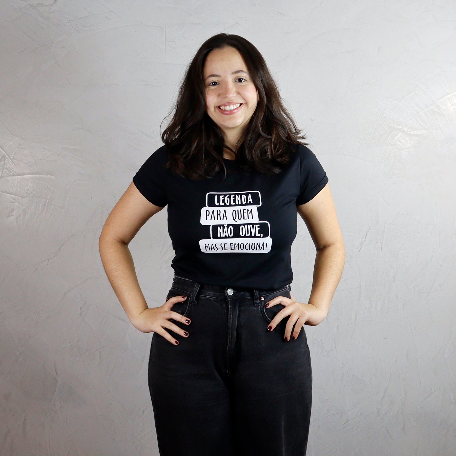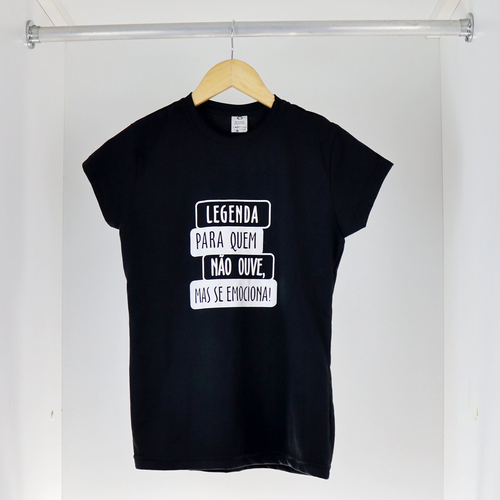 Esta camiseta faz parte da campanha “Legenda para quem não ouve, mas se emociona!”, um movimento nacional em defesa da acessibilidade comunicacional e do direito das pessoas surdas ao acesso pleno à informação e à cultura.